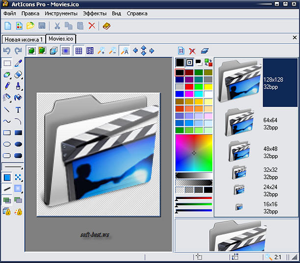 позволяет профессионалам и любителям создавать и редактировать иконки и работать с библиотеками иконок. Поддерживается экспорт и импорт множества графических форматов. Имеется русскоязычный интерфейс.